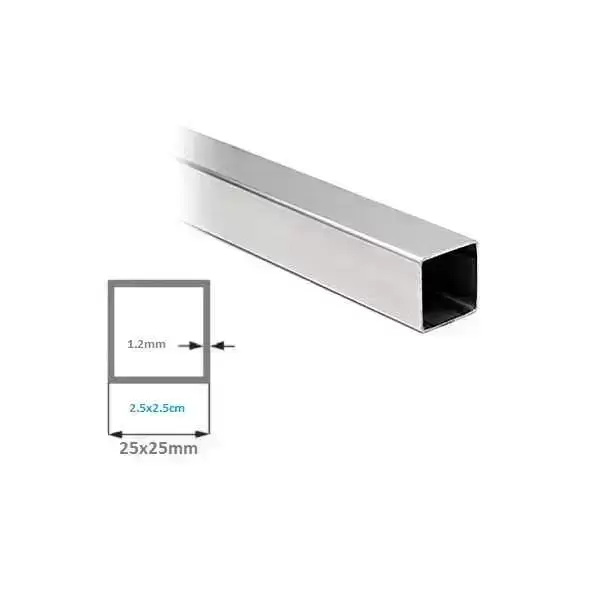 Tubo cuadrado 1" (25x25) calibre 18 (1.2mm) acero inoxidable 304.180g